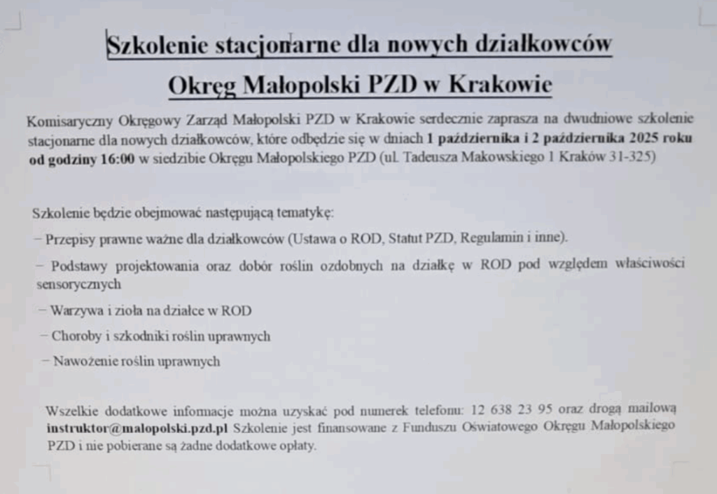 Szkolenie dla nowych działkowców 1.10 i 2.10